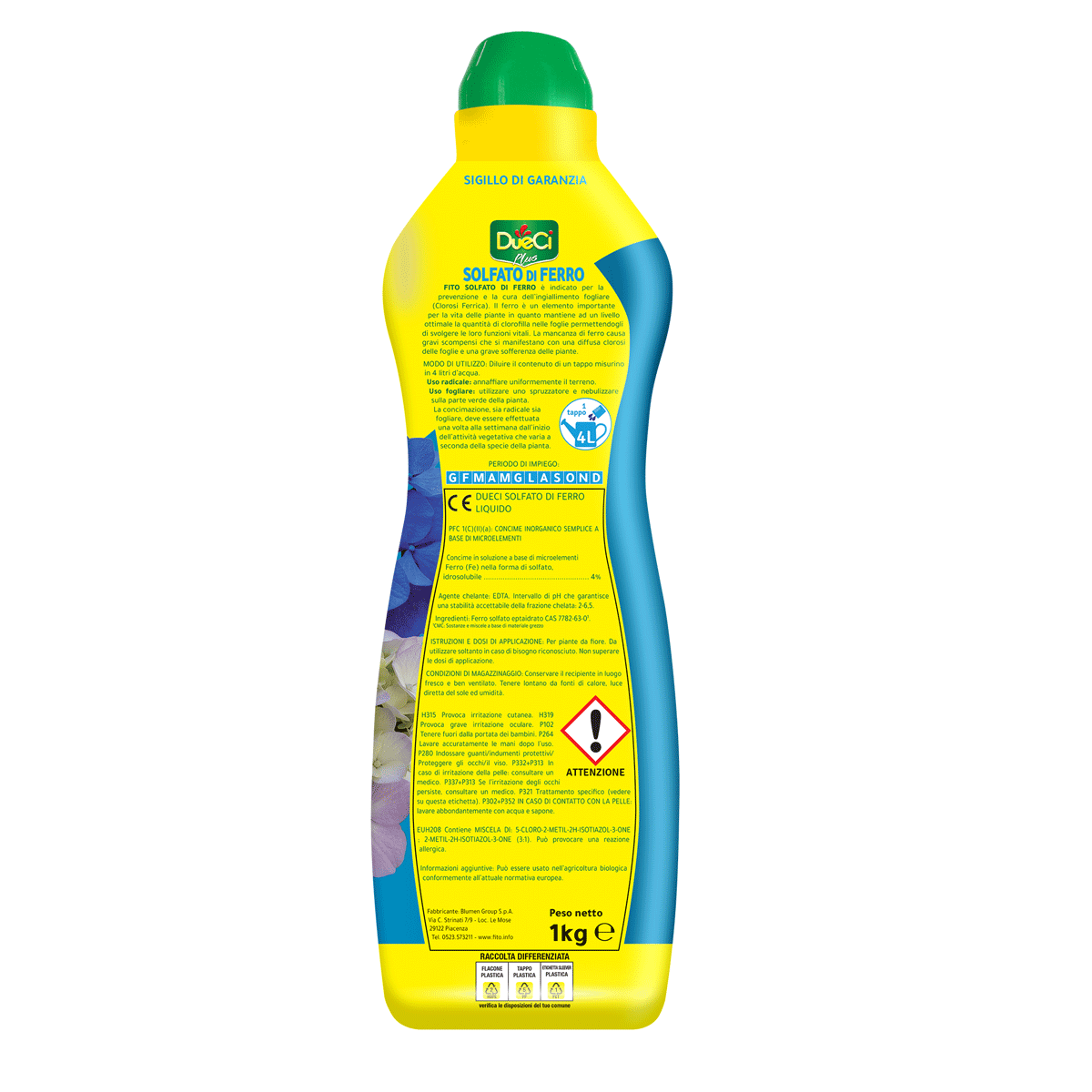 Usato regolarmente previene e cura la carenza di Ferro riportando la pianta al suo colore verde naturale.